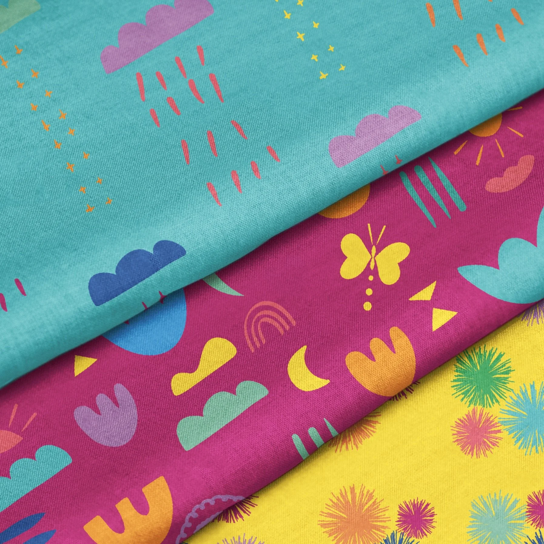A very simple font selection favors fun and approachability, and is quite charming when the alternate version is used. The script font used sparingly will add a personal touch in all the right places. The palette is a rainbow of merrymaking shades, inspired by a a striped tea towel from south of the border, a region known for its high ranking on the happiness scale. Patterns will be of every stripe and style that celebrates the occasion, with a handcrafted twist.
